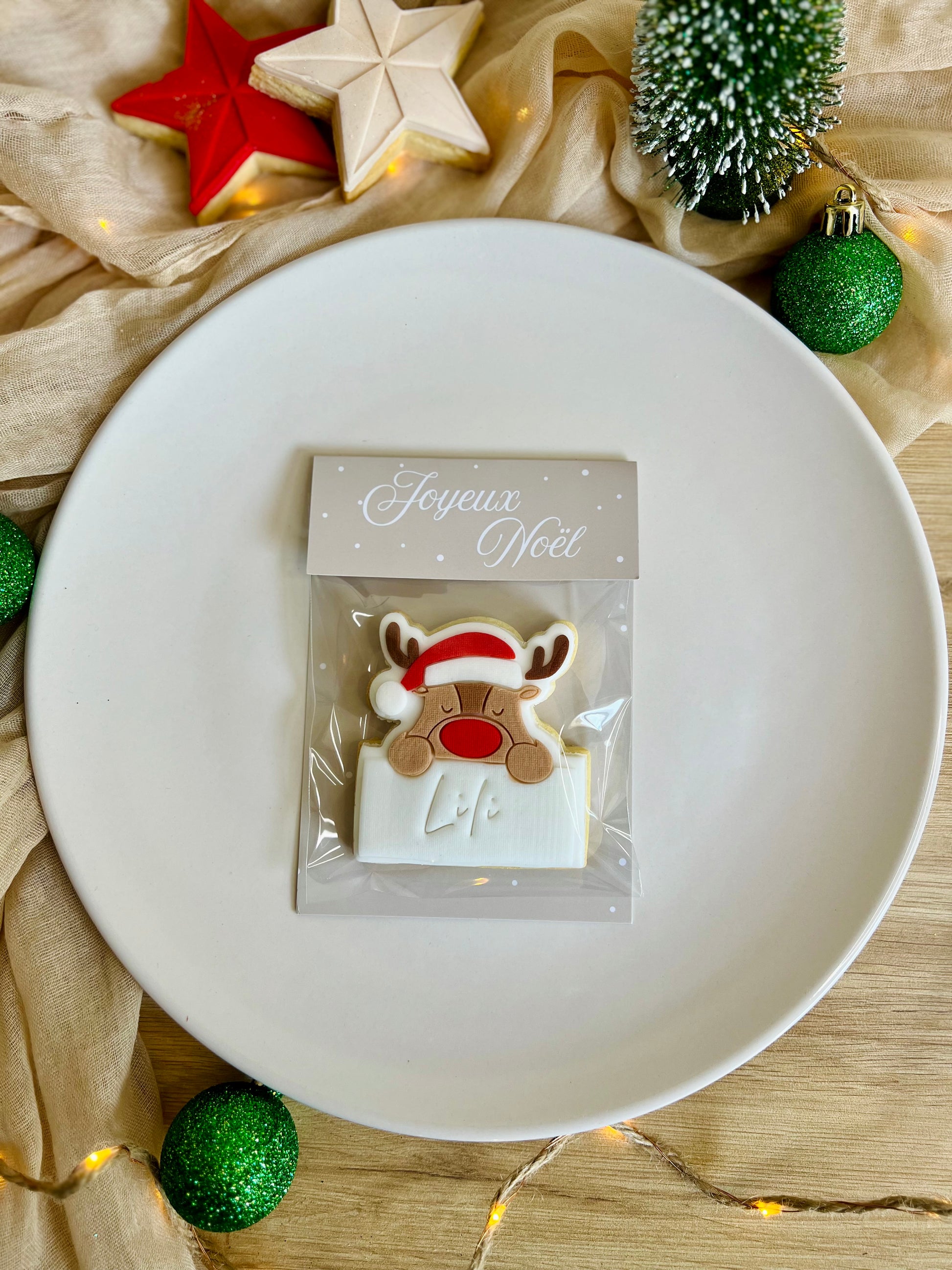 Marque place Renne sur carte « Joyeux Noël » à poser dans l’assiette de vos invités.